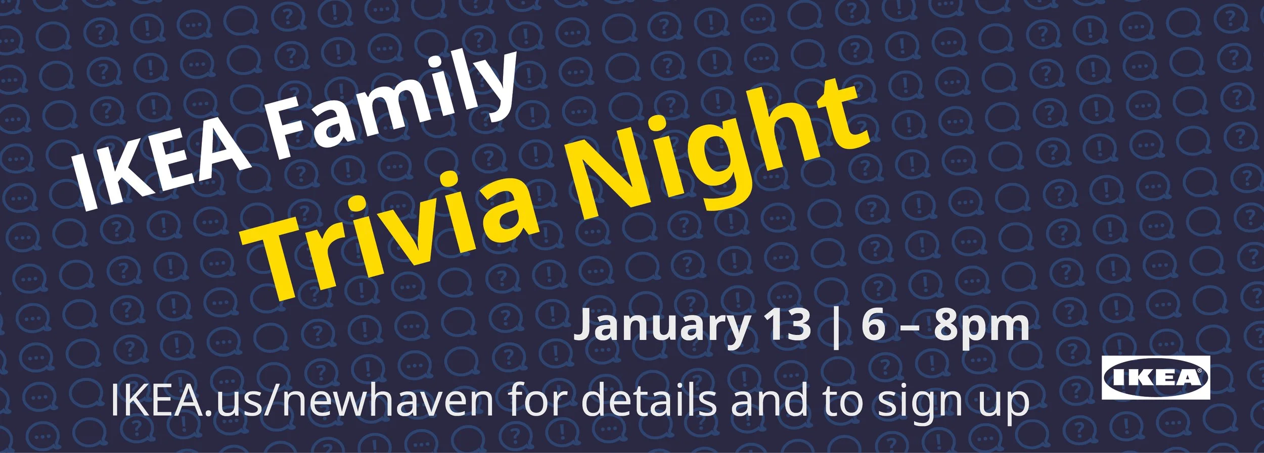 IKEA Friday Night Trivia Friday, January 13, 2023 6:00 PM 7:30 PM Ikea 450 Sargent Drive New Haven, CT, 06511 United States (map) Google Calendar ICS