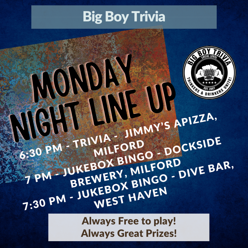 Monday Night Line Up Monday, February 24, 2025 7:00 PM 8:00 PM Big Boy Trivia & Games (map) Google Calendar ICS
