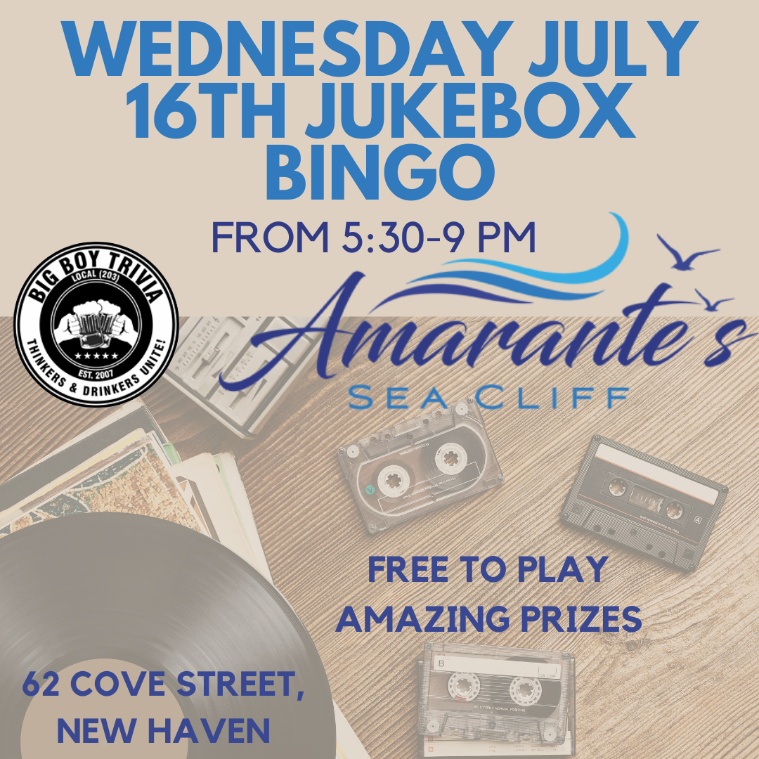 Back to All Events Amarante’s Jukebox Bingo Wednesday, July 16, 2025 5:30 PM 6:30 PM Google Calendar ICS